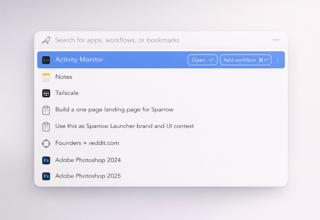 Sparrow understands intent, brings the right tools within reach, and helps you move quickly, stay focused, and stay in control.